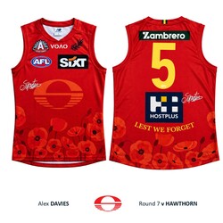 Alex Davies #5 Gold Coast SUNS ANZAC Appeal Round Player-Issue Guernsey
