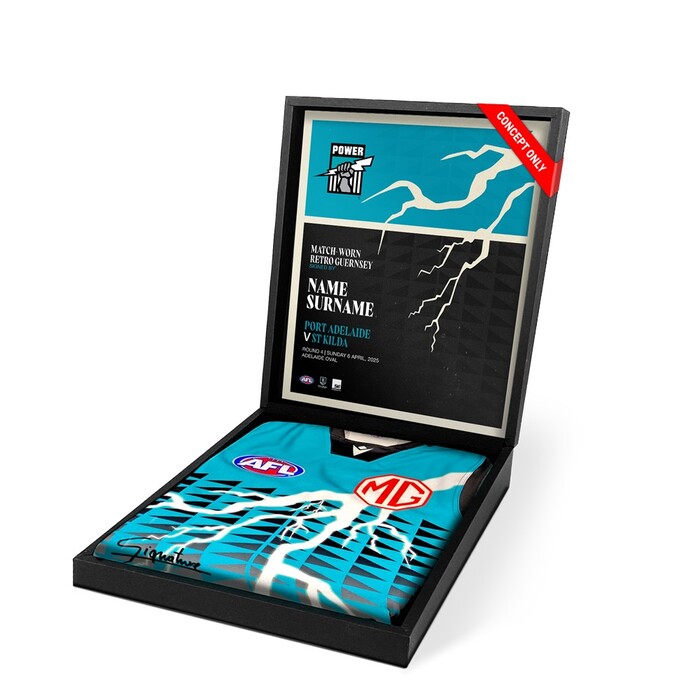 Official Memorabilia in conjunction with Port Adelaide Football Club, are proud to release the 2025 Lightning Bolt Guernsey Auctions. A collector's item that is a must-have for every Port fan, this is your opportunity to secure this commemorative guernsey from your favourite player. The special edition 2025 Lightning Bolt guernsey displays a Bearing the official Club and AFL logos, sponsor branding and a GPS pocket unique to player guernseys, this piece of history boasts an undeniable sense of authenticity. It is a true collector's item that will take pride of place in any collection.