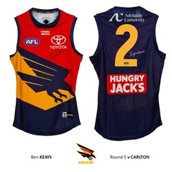 - You're bidding on Ben Keays's official Adelaide Crows Gather Round Guernsey from the Round 5 clash against Carlton at Adelaide Oval on Thursday 9th April 2026.