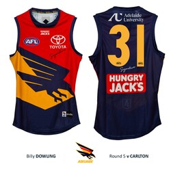 - You're bidding on Billy Dowling's official Adelaide Crows Gather Round Guernsey from the Round 5 clash against Carlton at Adelaide Oval on Thursday 9th April 2026.