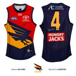 - You're bidding on Callum Ah Chee's official Adelaide Crows Gather Round Guernsey from the Round 5 clash against Carlton at Adelaide Oval on Thursday 9th April 2026.