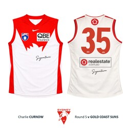 - This authentic guernsey has been certified by the Sydney Swans to SE Products - the official memorablia licensee of the AFL - to be the official player guernsey of Charlie Curnow for the Round 5 clash between the Sydney Swans and Gold Coast SUNS.