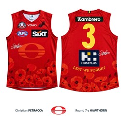 - You're bidding on Christian Petracca's official Gold Coast SUNS 2026 ANZAC Appeal Round guernsey from the Round 7 clash against Hawthorn at UTAS Stadium, Tasmania on Saturday 25th April, 2026.