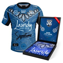 Official Memorabilia, in conjunction with Canterbury-Bankstown Bulldogs, are proud to release the Indigenous Jersey Auctions. The special edition jersey has been designed by Bundjalung artist Pam Brandy Hall. The stunning design features inspiration from Sydney's skyline, streetscape and foreshore. The artwork is an aerial view of Sydney, the wider homeland of the proud and rich Bulldogs Club. It represents aspects of Gadigal and Eora Country including meeting places, water holes and sacred sites.