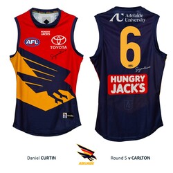 - You're bidding on Daniel Curtin's official Adelaide Crows Gather Round Guernsey from the Round 5 clash against Carlton at Adelaide Oval on Thursday 9th April 2026.