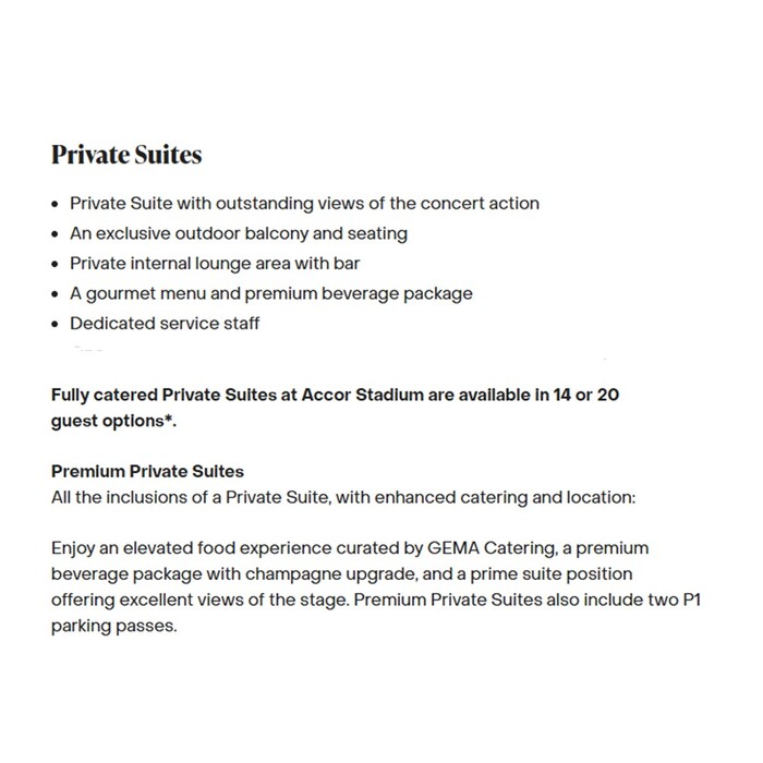 Ed Sheeran Loop Tour Catered Suite for 15 at Accor Stadium