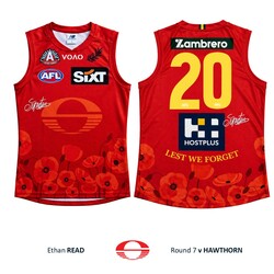 - You're bidding on Ethan Read's official Gold Coast SUNS 2026 ANZAC Appeal Round guernsey from the Round 7 clash against Hawthorn at UTAS Stadium, Tasmania on Saturday 25th April, 2026.