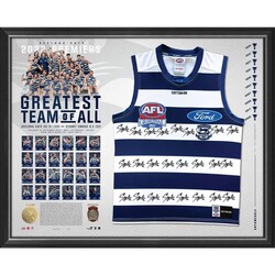 - Features an official Cotton On Geelong Cats 2022 home guernsey, complete with the 2022 AFL Grand Final logo, personally signed by every 2022 Premiership player, along with Premiership coach Chris Scott