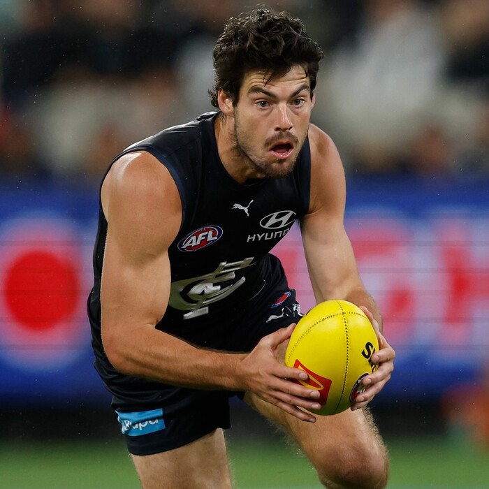 George Hewett #29 Carlton Round 1 'Raised Monogram' Match Worn Guernsey