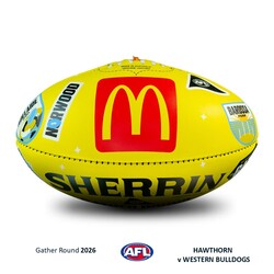 - This authentic Sherrin football has been certified by the AFL to SE Products - the official memorablia licensee of the AFL - to be an official match ball for the Gather Round clash between Hawthorn and the Western Bulldogs.