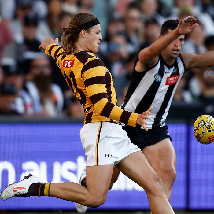 • You're bidding on Jack Ginnivan's official Hawthorn Match-Worn Guernsey from the Gather Round clash against Collingwood at Adelaide Oval