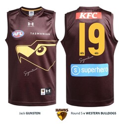 - This authentic guernsey has been certified by Hawthorn to SE Products - the official memorablia licensee of the AFL - to be the official player guernsey of Jack Gunston for the Round 5 clash between Hawthorn and Western Bulldogs.
