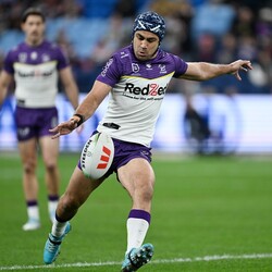 Bid now for this official 2025 Melbourne Storm Away Jersey worn by Jahrome Hughes:
