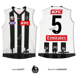 - This authentic guernsey has been certified by the Collingwood Football Club to SE Products - the official memorablia licensee of the AFL - to be the official player guernsey of Jamie Elliott for the Round 7 clash between the Collingwood and Essendon.