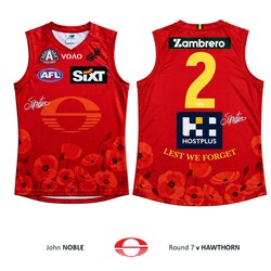 - You're bidding on John Noble's official Gold Coast SUNS 2026 ANZAC Appeal Round guernsey from the Round 7 clash against Hawthorn at UTAS Stadium, Tasmania on Saturday 25th April, 2026.