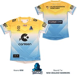 - You're bidding on Keano Kini's official Gold Coast Titans NZ Jersey from the Round 7 clash against New Zealand Warriors at Go Media Stadium, Auckland on Saturday 18th April 2026.