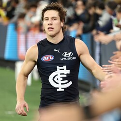 Lachie Fogarty #8 Carlton Round 1 'Raised Monogram' Match Worn Guernsey