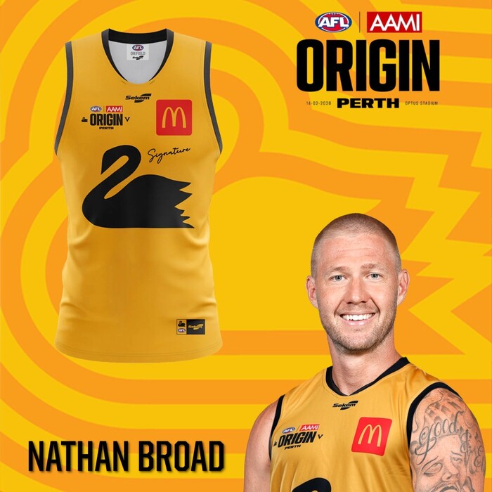 Bid now for this official 2026 WA AFL Origin Guernsey worn by Nathan Broad in: