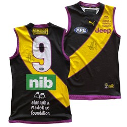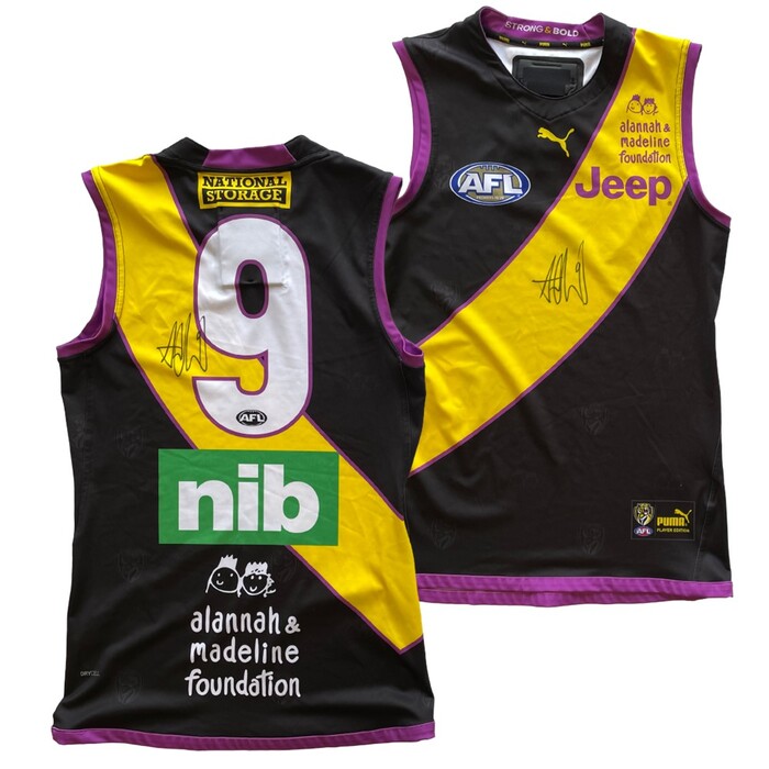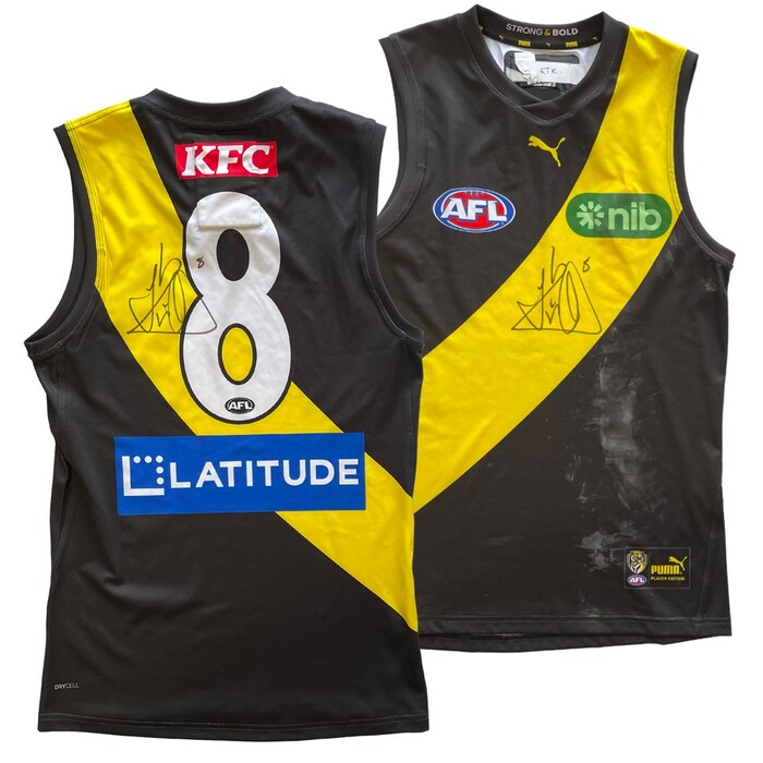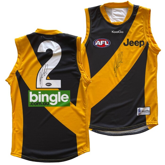 • Each authentic guernsey has been certified by Official Memorabilia - the memorabilia licensee of the AFL - as having been worn by the respective player (Trent Cotchin, Jack Reiwoldt and Dylan Grimes) during their AFL career and has been procured from their respective personal collection