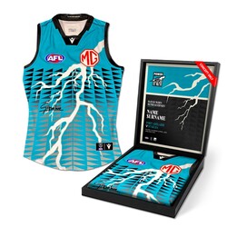 Official Memorabilia in conjunction with Port Adelaide Football Club, are proud to release the 2025 Lightning Bolt Guernsey Auctions. A collector's item that is a must-have for every Port fan, this is your opportunity to secure this commemorative guernsey from your favourite player. The special edition 2025 Lightning Bolt guernsey displays a Bearing the official Club and AFL logos, sponsor branding and a GPS pocket unique to player guernseys, this piece of history boasts an undeniable sense of authenticity. It is a true collector's item that will take pride of place in any collection.
