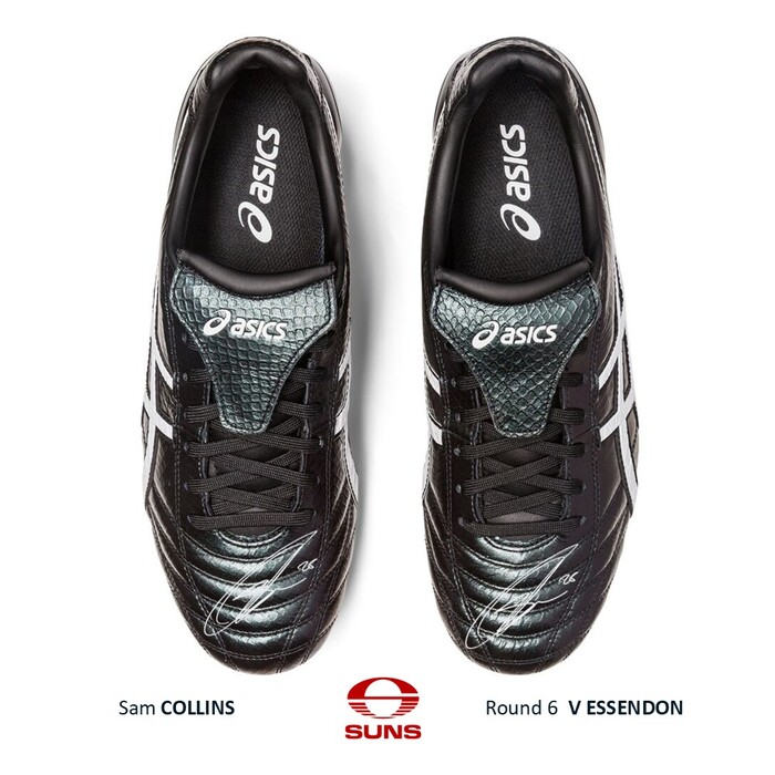 - These authentic boots and socks have been certified by the Gold Coast SUNS to SE Products - the official memorablia licensee of the AFL - to be the official player guernsey of Sam Collins for the Round 6 clash between the Gold Coast SUNS and Essendon.