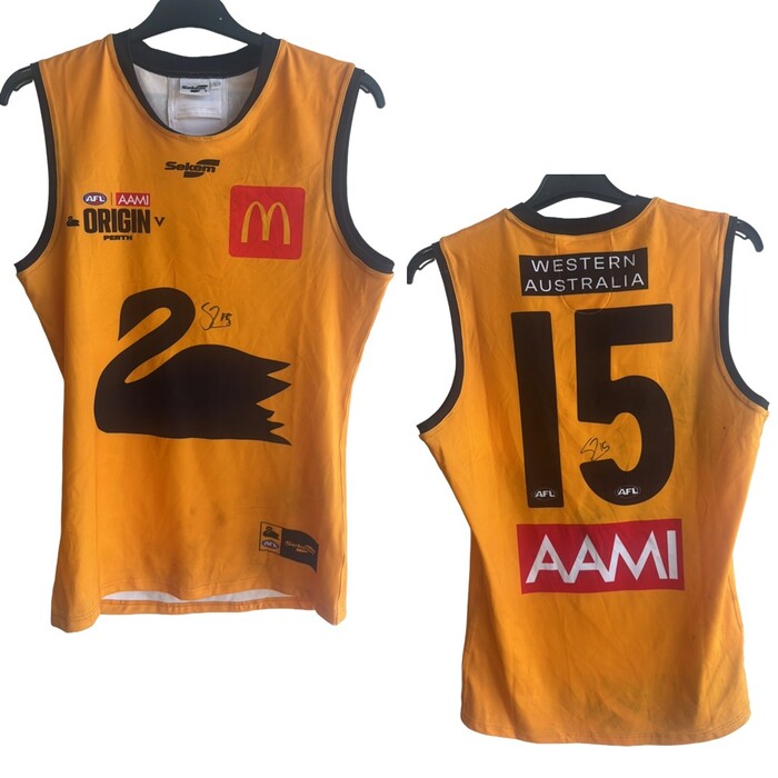 Bid now for this official 2026 WA AFL Origin Guernsey worn by Sam Taylor in: