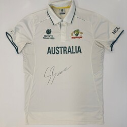 Official Memorabilia, in conjunction with Cricket Australia, are proud to release the match worn shirts from the WTC Final. The third World Test Championship Final will be played at Lord's in London from June 11 2025, featuring South Africa in their first appearance, taking on the reigning champions Australia. Now here is your chance to secure a match worn shirt from your favourite player. Bearing the official Cricket Australia logo, sponsor branding and the embroidered player cap number and initials, this piece of history boasts an undeniable sense of authenticity. It is a true collector's item that will take pride of place in any collection.