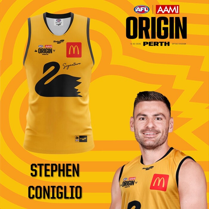 Bid now for this official 2026 WA AFL Origin Guernsey worn by Stephen Coniglio in: