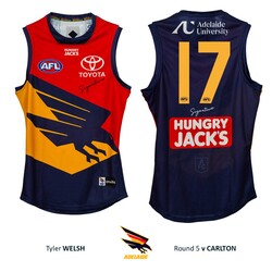 - You're bidding on Tyler Welsh's official Adelaide Crows Gather Round Guernsey from the Round 5 clash against Carlton at Adelaide Oval on Thursday 9th April 2026.