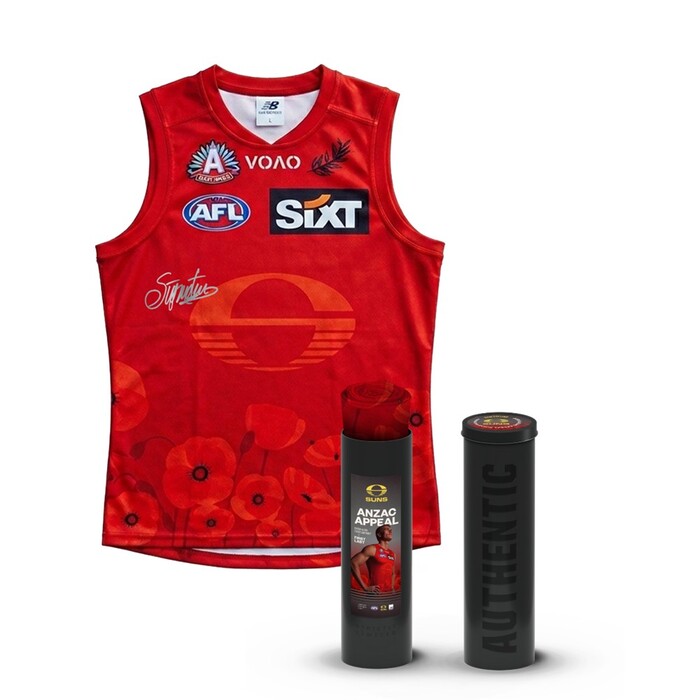 The Gold Coast SUNS 2026 ANZAC Appeal Round guernsey is a specially designed tribute created in partnership with RSL Queensland, honouring the service and sacrifice of Australian Defence Force members past and present. The design incorporates powerful symbols of remembrance, including red poppies and traditional ANZAC elements, alongside the official ANZAC Appeal logo, reflecting themes of respect, unity and legacy. Worn during the club's ANZAC Appeal Round match, the guernsey stands as a meaningful representation of the ANZAC spirit, with proceeds from this auction supporting the RSL's ANZAC Appeal.