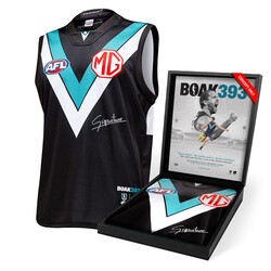 Official Memorabilia in conjunction with Port Adelaide Football Club, are proud to release the Travis Boak 393 Milestone Guernsey Auctions. A collector's item that is a must-have for every Port fan, this is your opportunity to secure this commemorative guernsey from your favourite player. The special edition guernsey 2025 home guernsey displays a special BOAK 393 logo above the Locker Tag to celebrate the momentous achievement. Bearing the official Club and AFL logos, sponsor branding and a GPS pocket unique to player guernseys, this piece of history boasts an undeniable sense of authenticity. It is a true collector's item that will take pride of place in any collection.